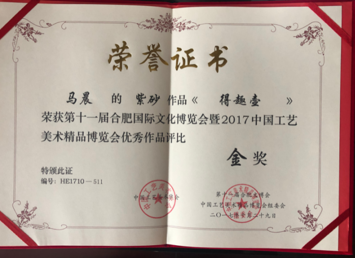 該作品榮獲中國工藝美術精品博覽會金獎